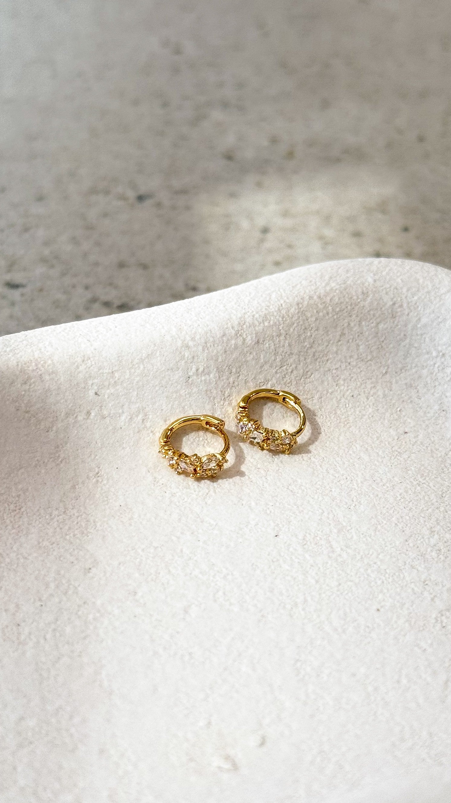 The Aaliya Sleepers are a pretty crystal huggie style. They are the perfect way to add a feminine touch to any outfit.